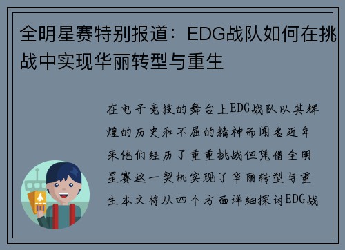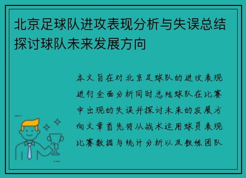 本文将对北京乒乓球队在欧锦赛中的比赛经验与表现进行全面分析。从比赛前的准备、技战术的运用、心理素质的培养以及团队合作等四个方面详细阐述。首先,文章将探讨球队在备赛过程中如何调整训练以适应国际赛事的要求;其次,分析球队在比赛中所采取的技战术策略,以及这些策略对赛事结果的影响;随后,将讨论心理素质对运动...